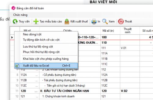 Bước 3: Chọn loại báo cáo tài chính cần tạo